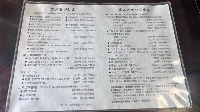佐久の山あいにひっそりたたずむ職人館。ここは“ごはんを食べに行く”というより、手仕事の世界を覗きに行く こだわりを体験する ような場所。