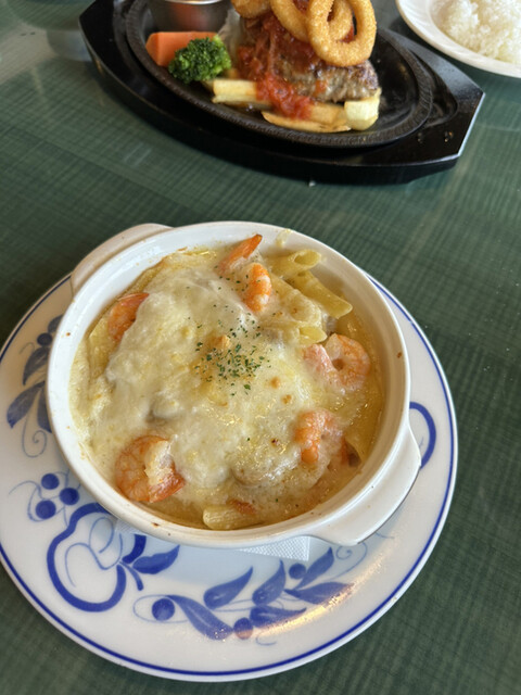 りんご狩りの後に家族で行きました。長野県内中心のファミレスでいいのかな?メニューは何でもある感じ…ステーキやハンバーグ、パスタからウナギまで何でもあった。店に入る前からハンバーグを食べたいね…と子ども...
