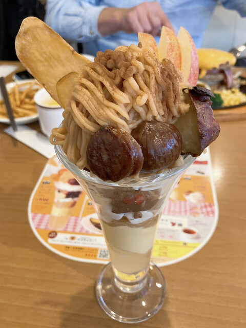 期間限定・おいもとりんごのモンブランパフェ990円。