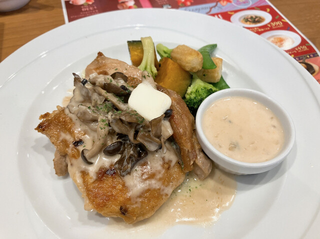「焼きネギときのこの照り焼きチキンステーキ ~濃厚タルたまソース~790円。