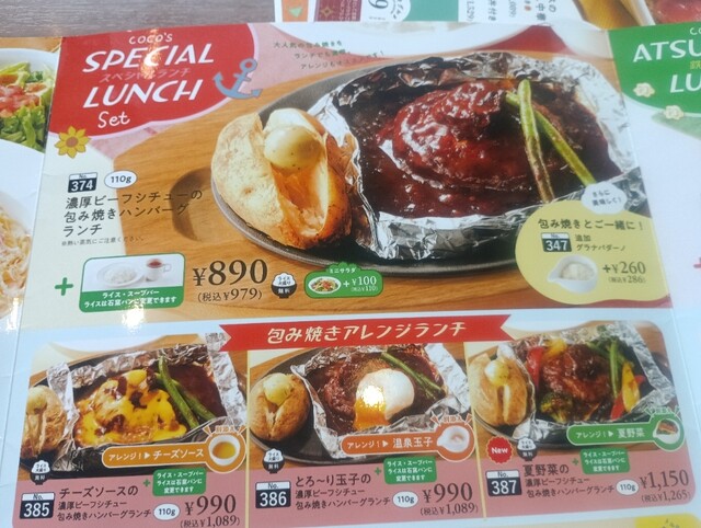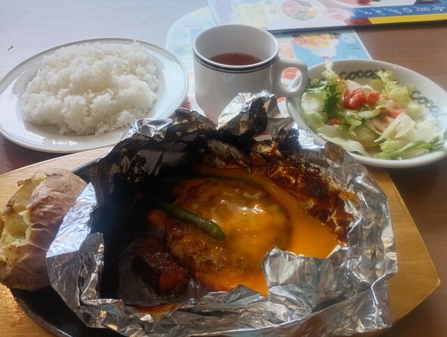 佐久市 ココス佐久平駅東店 チーズソースの濃厚ビーフシチュー包み焼き ハンバーグランチ1089円 サラダ110円を頂いて参りました。