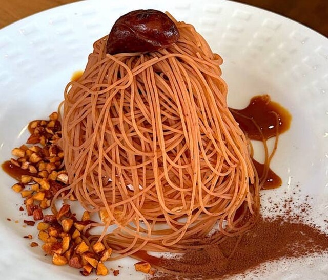 今日は食後の甘いご褒美に、ずっと気になっていた モンブラン を注文♡