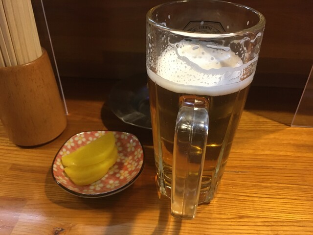 新玉、焼き鳥、ニラ玉、ホルモンとビールと焼酎が進みますね!締めにこのお店自慢の鍋焼きうどんをいただき、飲み過ぎ、食べ過ぎ状...