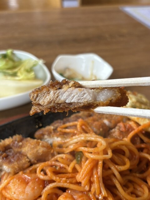 ナポリタンにカツにフライ、まるで大人のお子様ランチ♪