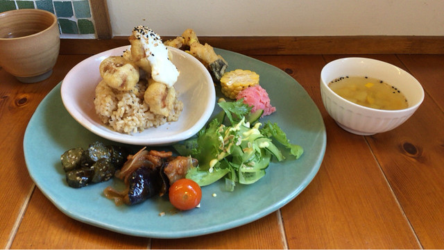 【2016年2月】 日替わりランチプレート。 大豆ミートの唐揚げ風など、身体に優しそうな洋風精進料理。 一見量が少なく見えましたが、お腹いっぱいになりました。 ... 続きを読む»