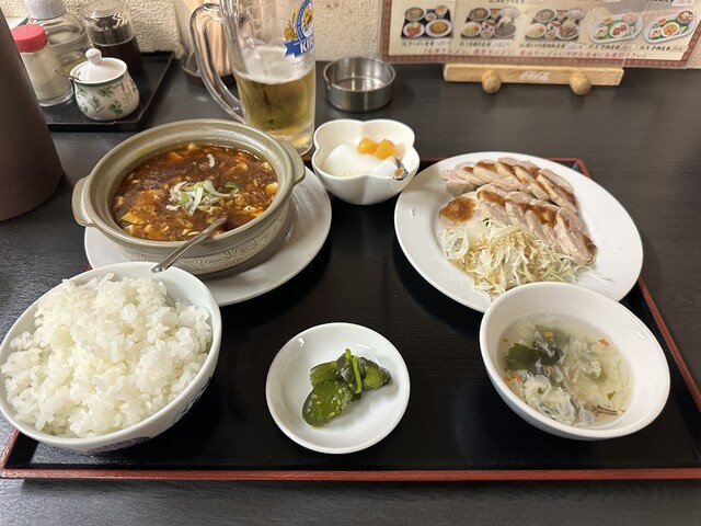 到着。ゴロゴロ茄子がうまそうだ。キャベツのサラダと緑の中国産きゃうりの漬物、玉子スープ。麻婆茄子は、山椒のない食べやすいタイプ。アツアツでいいね。玉子スープも悪くないですよ。ご飯は旨い。佐久の米らしい。...