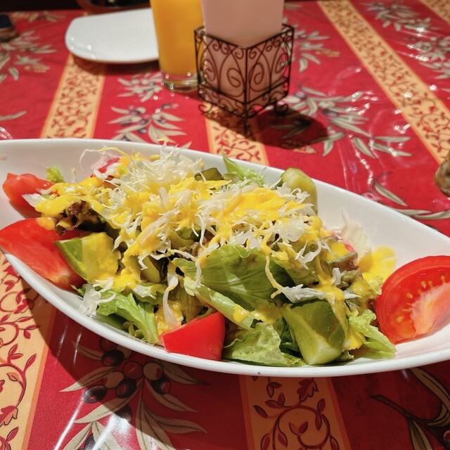 サラダ770円ということで、一人分ではないだろうなと思い、店員さんに尋ねたところ、2〜3人でシェアする量とのことでした。