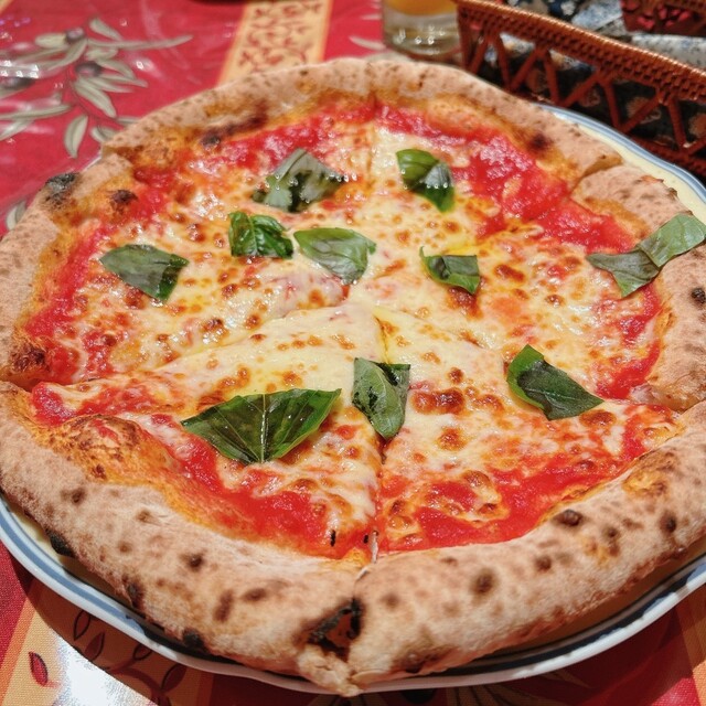 ピザはマルゲリータを注文。石窯焼きのピザで、チーズがたっぷりトロトロで、思ったよりも大きくて大満足です。