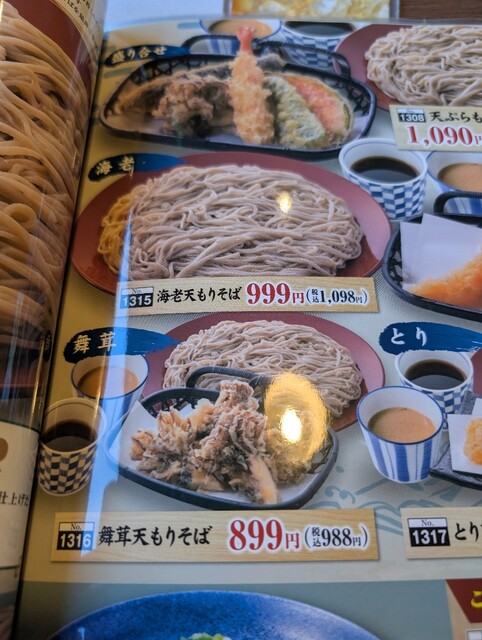 そばには、ゴマダレと普通のつゆ(ねぎワサビ皿の下)の2種類と天ぷら用の天つゆも付いています。