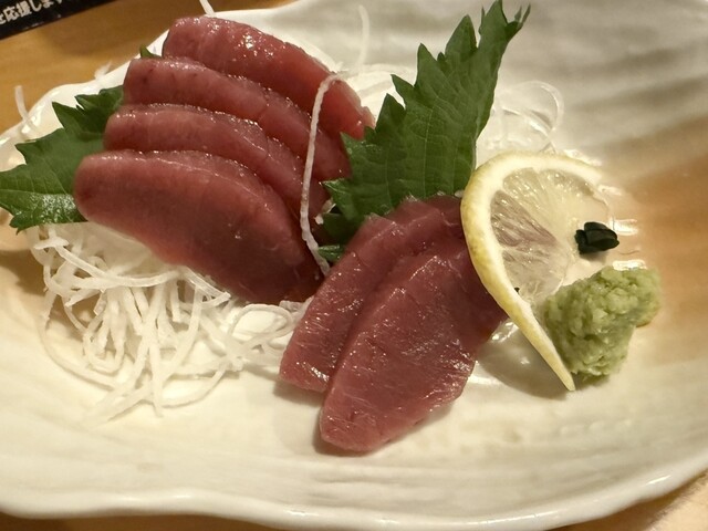 本マグロ刺身は鮮度が高く、食べると旨みが広がりますが、やや値は張ります。