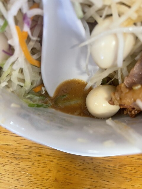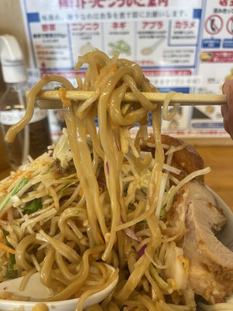 トッピングしたガリマヨとアブラが絶妙に混ざり合い美味しい。