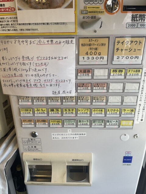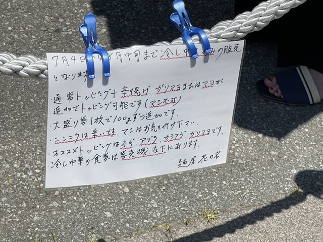 7月4日から8月中旬までは冷やし中華のみの提供らしい。