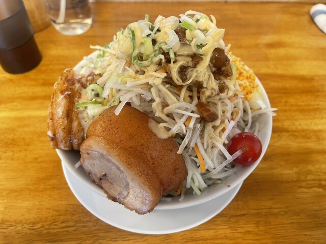 「野菜少なめ、ネギ、ガリマヨ」