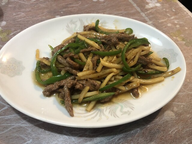 牛肉のオイスターソース炒め 牛肉、パプリカ、エリンギがオイスターソースの優しい味付けに炒まってい...