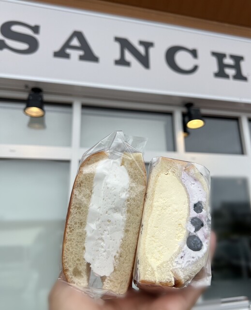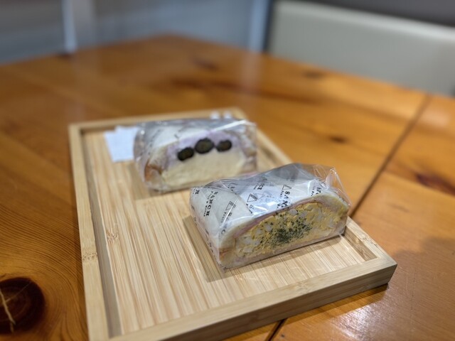 牛乳パンを求めて来てみたが、美味しそうなサンドイッチが並んでいるので一緒に購入。