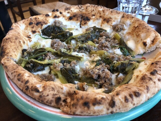 ピッツァは、私はシェフのオススメのノザワーナ(野沢菜、モッツァレラ、サルシッチャ)、エスプレッソを