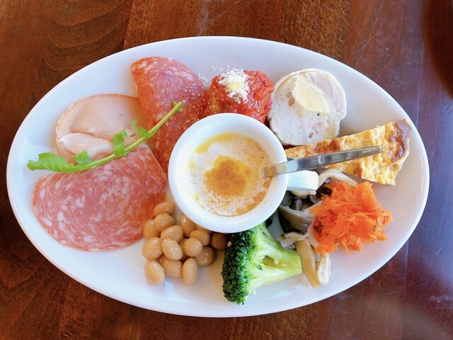 ハムも3種も入っており、連れは白ワインを追加オーダー。私はドライバーですので、お冷やで我慢。