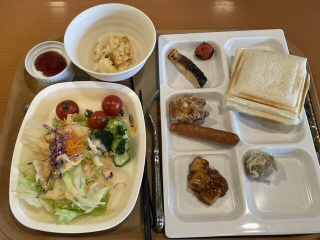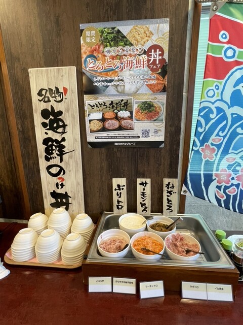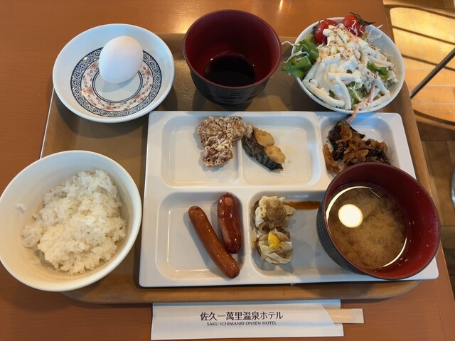 佐久一萬里ホテルさんに泊まりました。 朝食のバイキングをいただきました。 ウリは自分で作る海鮮丼です。 サラダや玉子焼き、ソーセージなどの定番のもののほかに地元の食材として、... 詳細を見る