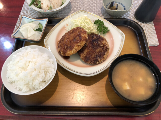 ランチメニューを眺め、メンチ&コロッケ定食が気になった...