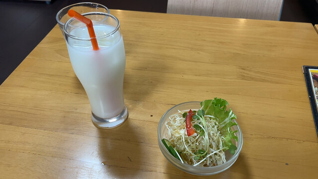 セットのサラダとラッシーが到着。