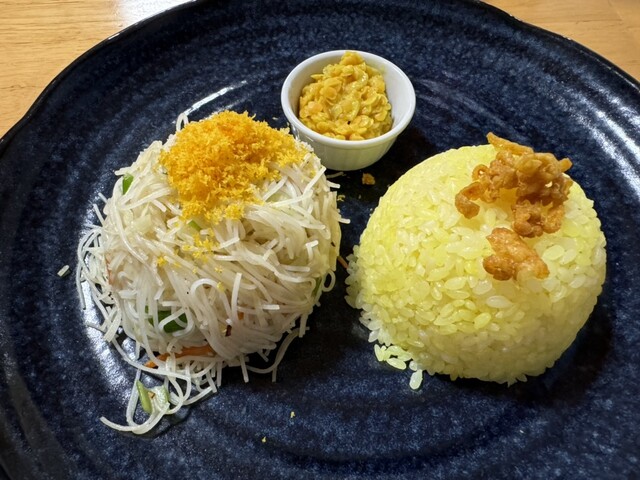 ライス、ヌードル、小皿にのったシーニサンボル