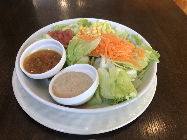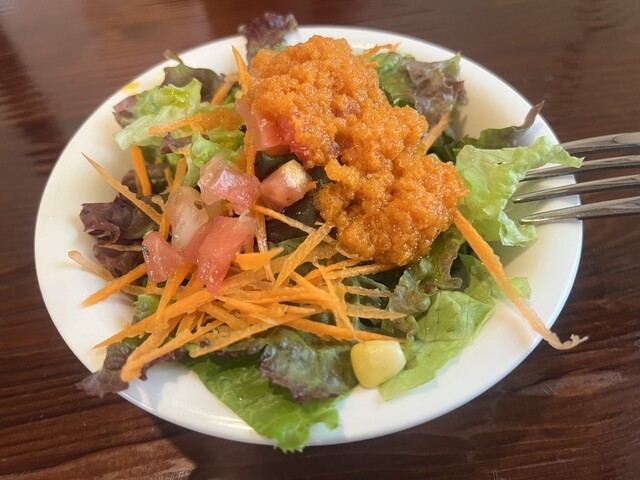二号店のみの限定もあったので”明太きのこの和風カルボ”を大盛り、サラダも注文しました。