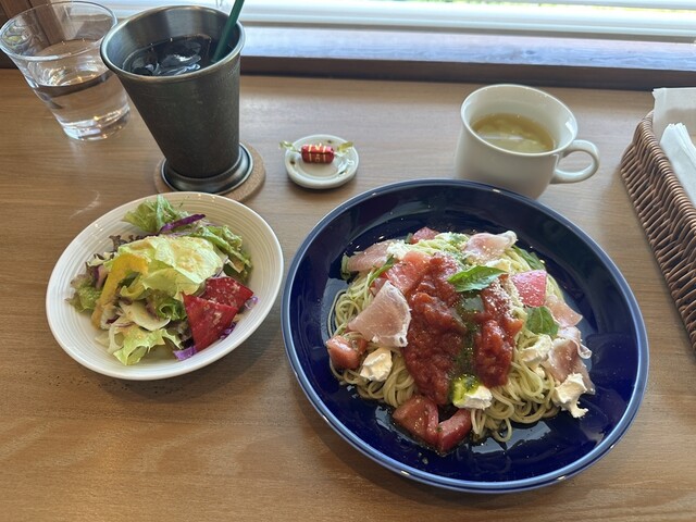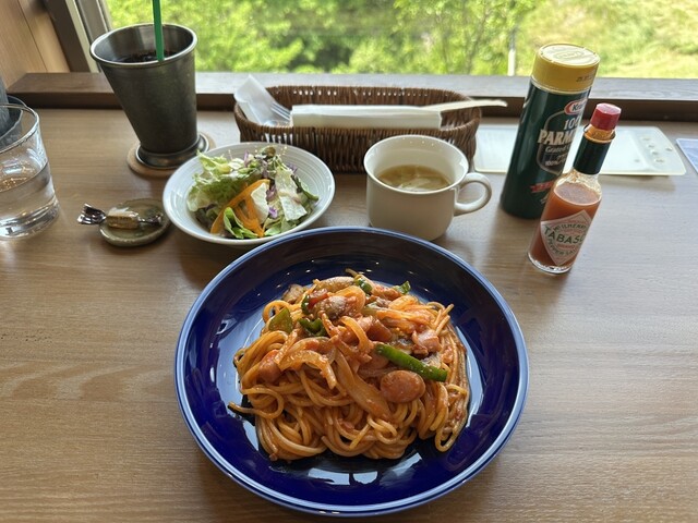 ナポリタンは私好みの濃い目の味付け、サラダのドレッシングも美味しかった。スープは具沢山のコンソメスープでした。アイスコーヒーも美味しかった。他にも気になるメニューがあるので...