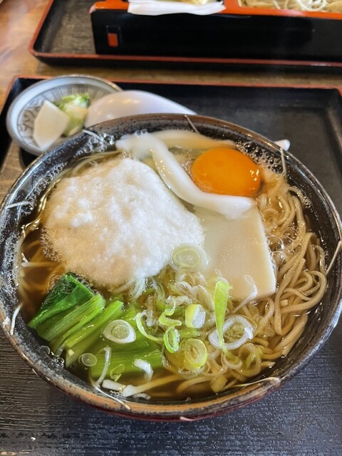三連休のランチで伺いました。11時すぎでしたが、すでに待ちが出ていて中に入るのに15分ほど待ちました。お蕎麦は山かけたまごを注文。ミニ丼も美味しかったです。肝心のお蕎麦はとっても香りが良くて、意外とボ...