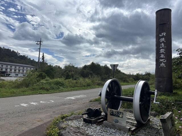 バリアフリー揃ったトイレあり駐車場、幸せの鐘付き記念碑、標識とあり、鉄道最高地点神社⛩️もある(御神体は動輪、鈴代わりに犬釘)。そしてさらにあるのが、、