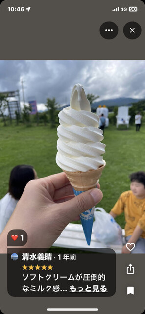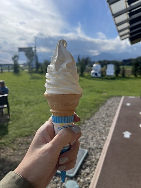 駐車場も広いし、広大な土地を見ながら食べれるソフトクリームは最高です。 ヨーグルトが酸っぱくて新鮮! 甘みと濃厚さでトロうまのソフトクリームと相性良いねー⭐︎ 少しずつ混ぜながら食べたけど、周りの...