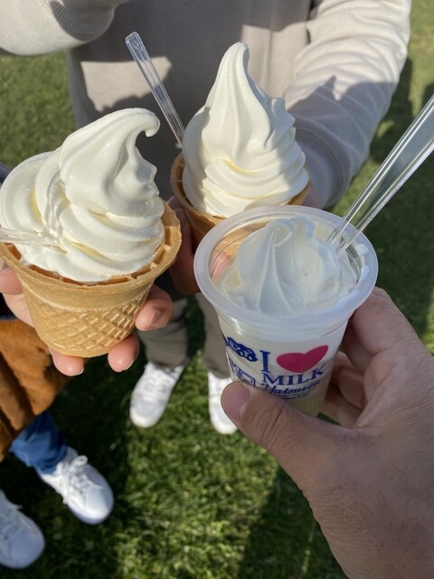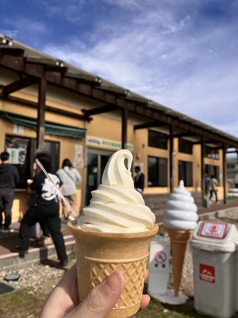 ソフトクリームが圧倒的なミルク感でとても美味しかったです!牛乳の味がしっかりと感じられるミルクソフトクリーム。座る場所は少ないけれど広々として気持ちがいいです。