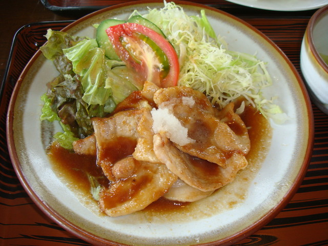 しょうが焼きは定食で頂いたのですが多めのご飯とお新香、お味噌汁、がついて