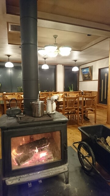 お店に入ると薪ストーブ。あったかーい(*´ω`*)