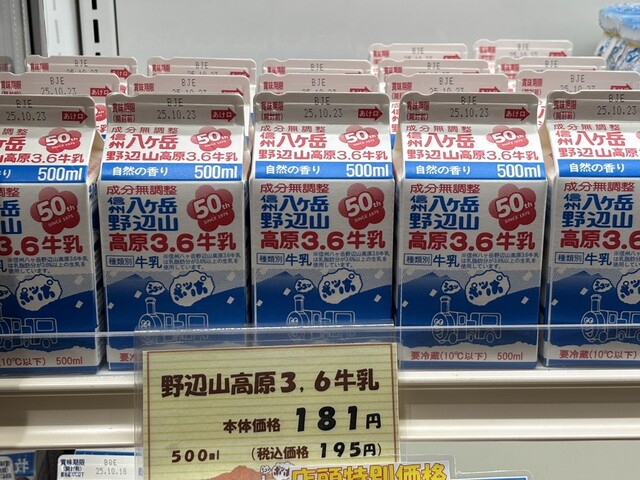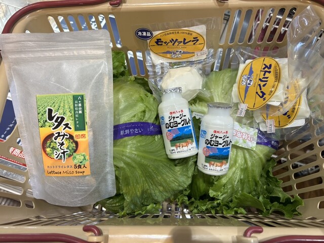 野辺山高原3.6牛乳・シュッポッポプリン・ラスク・ヤツレンTシャツ(連れが欲しいと)などを