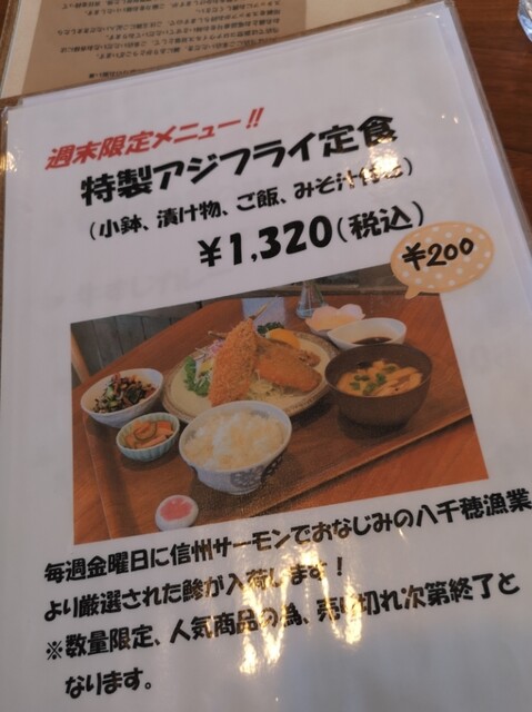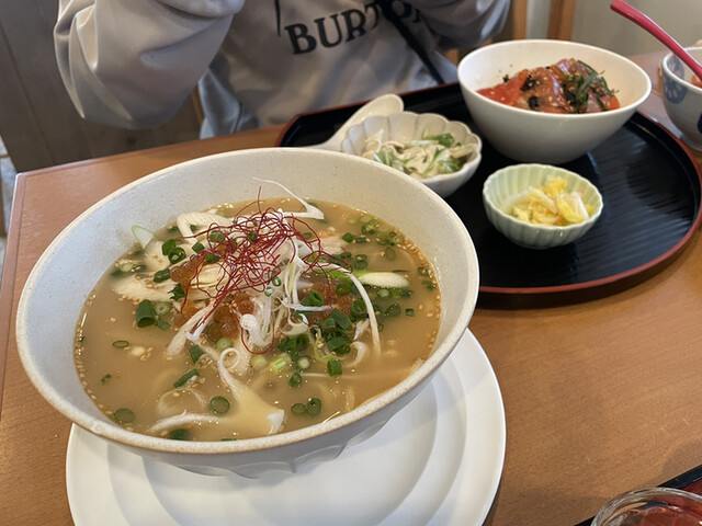 薬味が沢山あって迷うほどです。色々な味変が楽しめる。最後はスープをかけてお茶漬けも最高でした。他のメニューも惣菜が楽しめるものや、ラーメンも美味しそう。アジフライは...