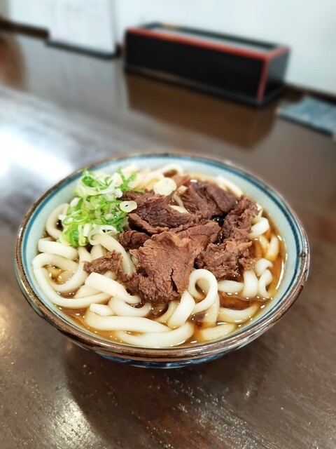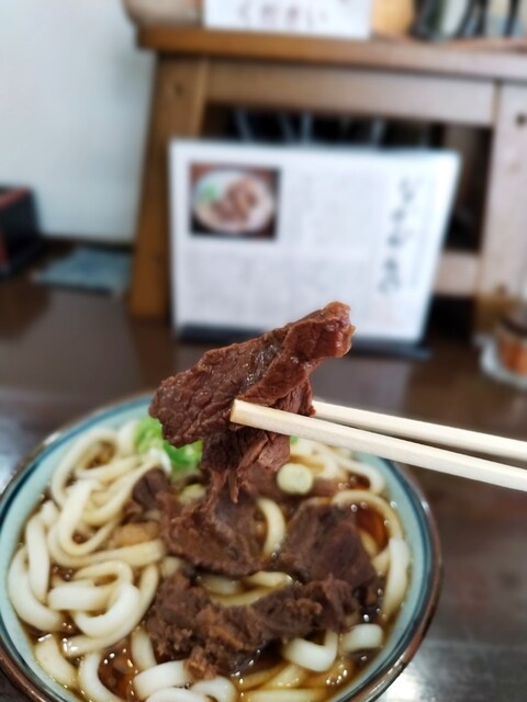実はこの肉うどん、豚肉のかわりに馬肉が入っている。ちなみに馬肉はうどんの出汁をとる時、煮込むのに使用したものだ。