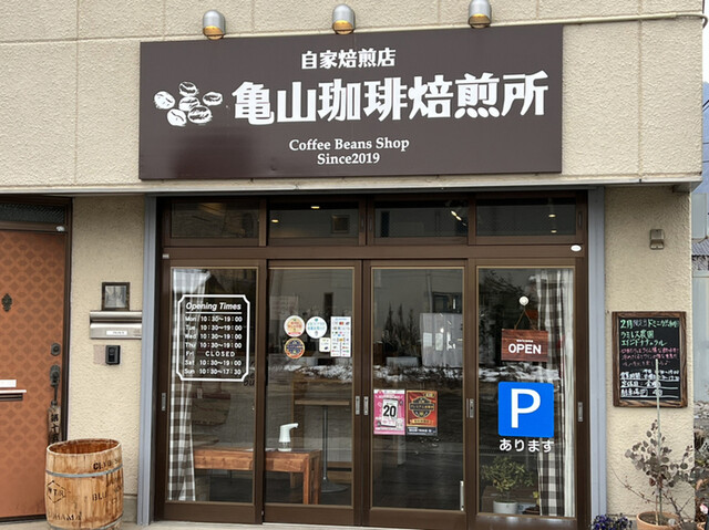 有 計4台 店舗斜め向かい 内堀駐車場内「亀山珈琲」の看板 |