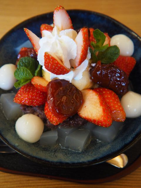 東京の甘味処とは違った、観光地の甘味処、って感じの雰囲気。昔ながらの雰囲気なのに、スピーカーからは最近のJ-popが流れている。