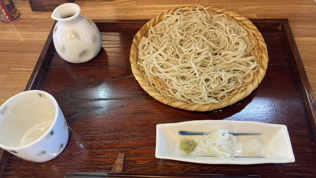 メニューはざる、田舎、二色、つけとろざる、かけ、そばがきで、蕎麦前は焼き味噌と数種類の純米酒だ。