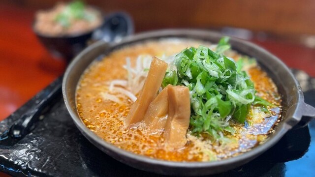 このような鍋形式のラーメンは初めていただきましたね。 少しというか、なかなかに重々しいドアをこじ開けると、ようやく店内に入ることができます。地元にも似たような造りの扉を使っているラーメン屋さんがありますので、鍛えられているため問題ありません。 メニューからして独特です。板状のものが各席に... 詳細を見る