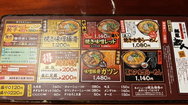 仕事の時のお昼として利用しました。14時ごろに行きましたがその時間でも少し人がいて人気店だなと思いました。1番人気の焼き味噌ラーメンにしましたが美味しかったです。ランチはライスがおかわり自由なのがとて...