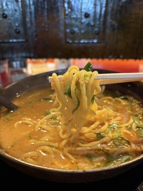 香ばしい香りで、しつこくないスープで良い。乗ってるたっぷり野菜を食べつつもちもち麺を食べ、またさらに追加してしまった野菜を後悔す...