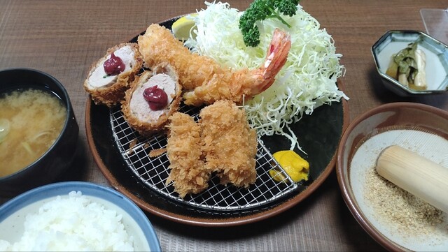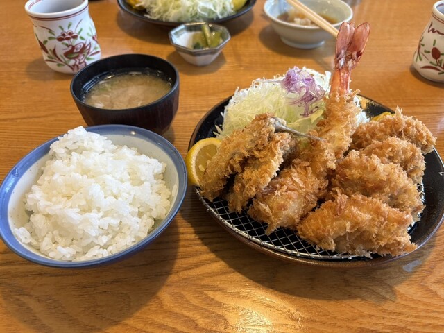 @勝味庵(しょうみあん)/勝味定食 茅野で出会ったのは、“揚げたて”と“刺し身”の夢コラボ。 【勝味定食】は、海老フライ×一口ヒレカツ×鰯の刺身という、まさに主役トリオが揃い踏みのごちそう定食! サックサクの衣をまとった海老フライは、プリっと弾けるような食感でレモンとの相性も抜群。 ... 詳細を見る