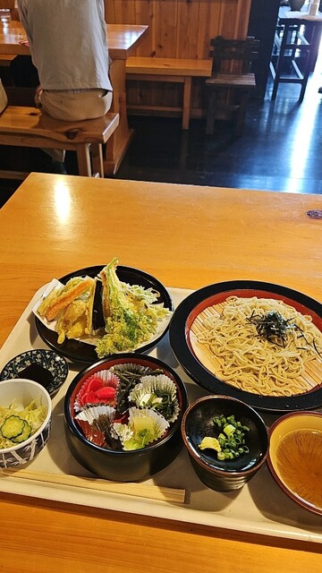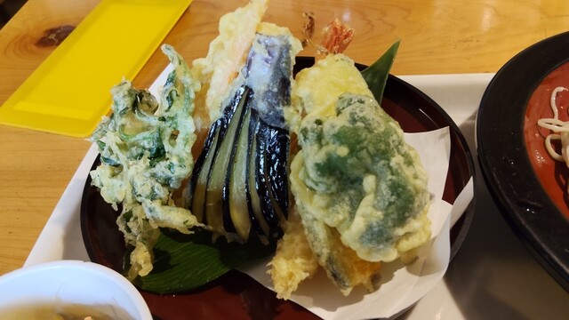 店内は、広く、鹿の剥製なども飾られています 店舗入り口には、美味しそうな「おやき」が並べられていて、食欲をそそりました 周りを見渡すと、皆さん天ぷらを美味しそうに食べていて、思... 詳細を見る