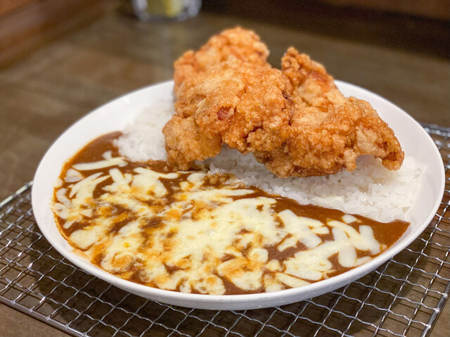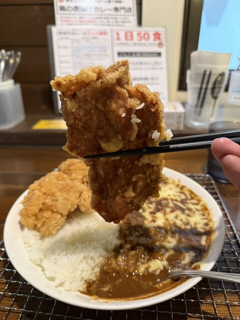 脇道に入ってすぐにある、唐揚げカレーの店です。