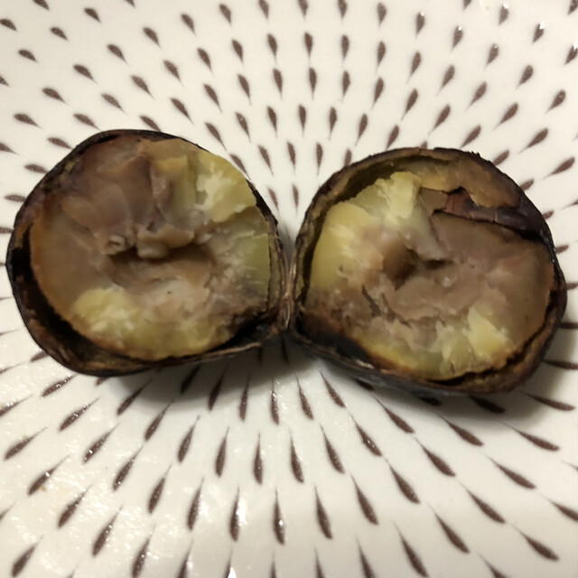 西友とかユニクロのあるちょっとしたモールの向かい側、長屋状の建屋の真ん中あたりにちょこんとあるお店、焼き栗の他、冷凍ケースにスイーツも販売しています。昼食後のデザートにモンブランと大福を購入しましたが、凍っているので溶けるには当然しばらくかかる為、15時のおやつで食べることとしました。大福は白餡の中にデンと大きい焼き栗が入っていてインパクトがあります。こういうお菓子は基本冷凍できるのでこういう小...