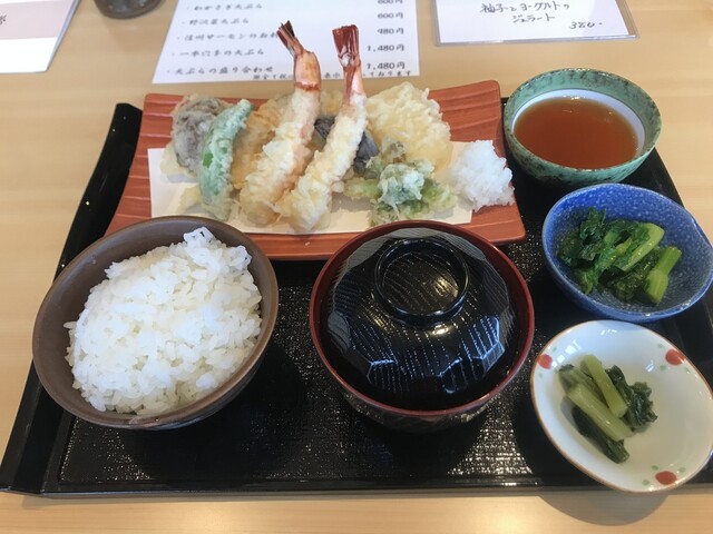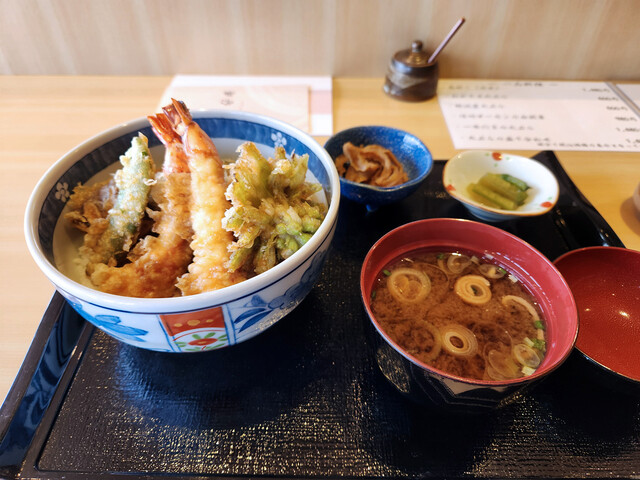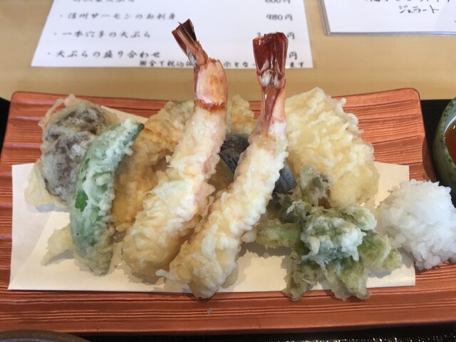 上諏訪からこちらに移転したとのこと、上諏訪って住んでる人以外は、インターからちょっと遠いので不便、一方、新立地はインターから近いのでアウェイの人には便利度アップしました。店内はカウンター12席にテーブル席4卓の構成、少人数やカウンター指向のお客さんのみならず、ちょっと落ち着いて食べたいニーズにも対応の席配置。つらつら品書きを眺めますと、ランチは本格天ぷら店としては手ごろな価格の丼・定食他ラインナ...