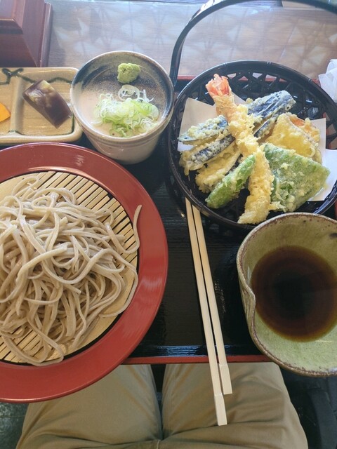 天ぷらはからっと揚がっておりおいしかったです。そばはコシは確かにあるが風味は少なかったような気がします。天ぷらですと時間がかかるようですが、許容範囲。付け合わせの羊羹?が最後の締めにぴったりでした。せいろだけなら早くでてきます。