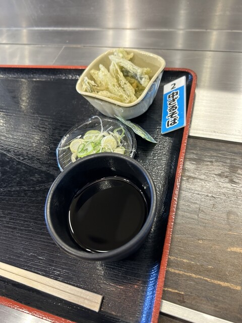 丸亀製麺と同じ様な、トレーを持って並んで天ぷらやメニューの札を取っていく方式。