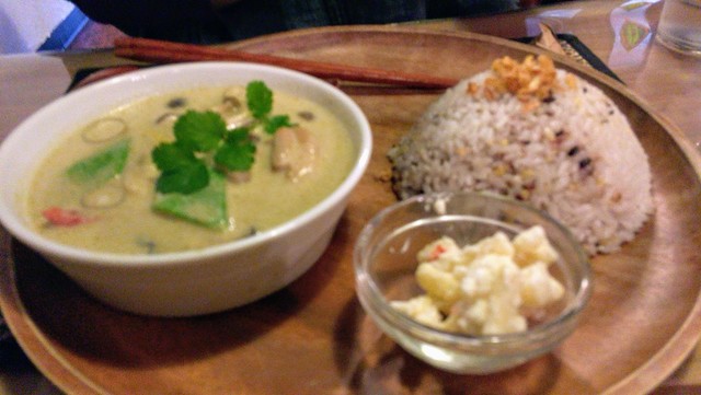 セイロン風ポークカレーBセット1100円 平日ランチに気になってたカレーカフェへ。ピーク時間帯でも先客2名、まさにスナックにアジアンテイストのインテリア。バターチキンに惹かれ... 詳細を見る